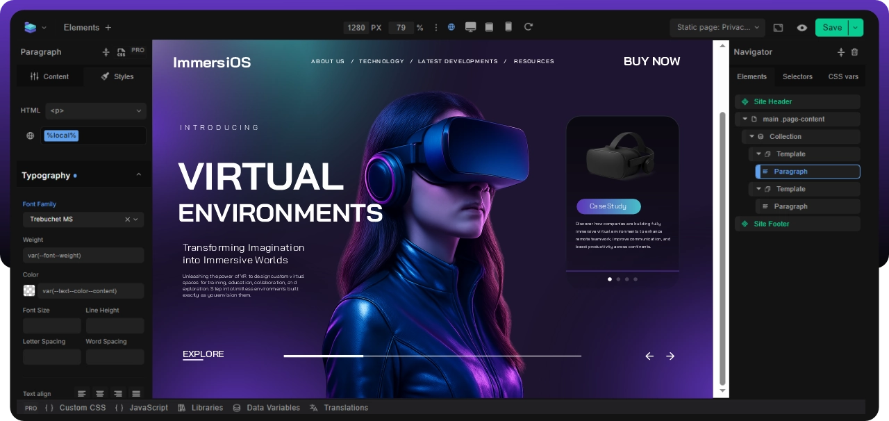 01Crea exactamente lo que imaginas. Utiliza elementos base flexibles como punto de partida para dar forma a tus propios diseños e ideas dentro de Builderius.